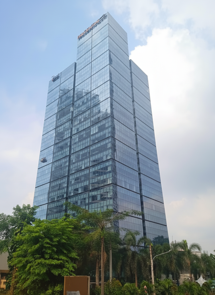 Fire alarm & detection integrated with BAS (heat & smoke detectors, alarm bells, sprinklers, hydrants), backed by generators and aligned with NFPA & DKI regulations.